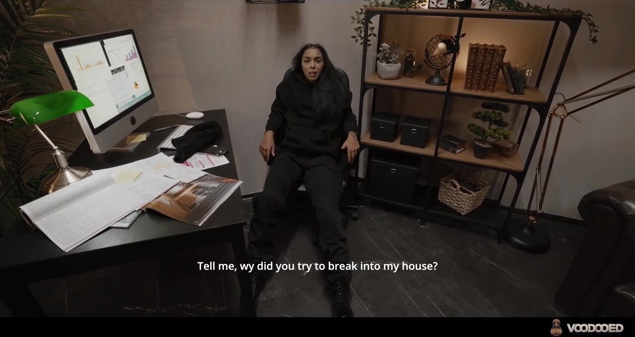 כישוף וודו (Voodoo) הפך פריצה לילית למופע משפיל במיוחד. בלאק, לבושה במסכה שחורה וחליפת הסוואה, חדרה בשקט למשרדי תאגיד ענק כדי לגנוב קבצים סודיים השווים מיליונים. היא כבר פרצה למערכת והעתיקה את הנתונים, כשפתאום הופיעה בפתח אמירה, העובדת האחרונה שנשארה במשרד. במקום לצרוח לעזרה, אמירה הוציאה ברוגע בובת וודו קטנה מהתיק שלה – העתק מדויק של הגנבת. סיבוב קל אחד של יד הבובה, ובלאק קפאה במקומה. אצבעותיה החלו להחליק בניגוד לרצונה מתחת לבד של חליפת הגלישה שלה, פותחות את הרוכסן ומלטפות את שדיה. היא לא יכלה לעצור: הגוף שלה פסק רגליים על השולחן, יד אחת משפשפת בזעם את הדגדגן והשנייה חודרת לכוס הרטוב שלה. בלאק גנחה והתפתלה, גומרת שוב ושוב תחת מבטה הרגוע של אמירה ששלטה בכל תנועה של הבובה. הקבצים נשארו על המסך – הגניבה נכשלה, והגנבת הפכה לצעצוע חסר אונים של הגוף של עצמה. קסם הוודו השאיר את בלאק מושפלת ורועדת מאורגזמות כפויות, עד שאמירה החליטה שהלקח נלמד.